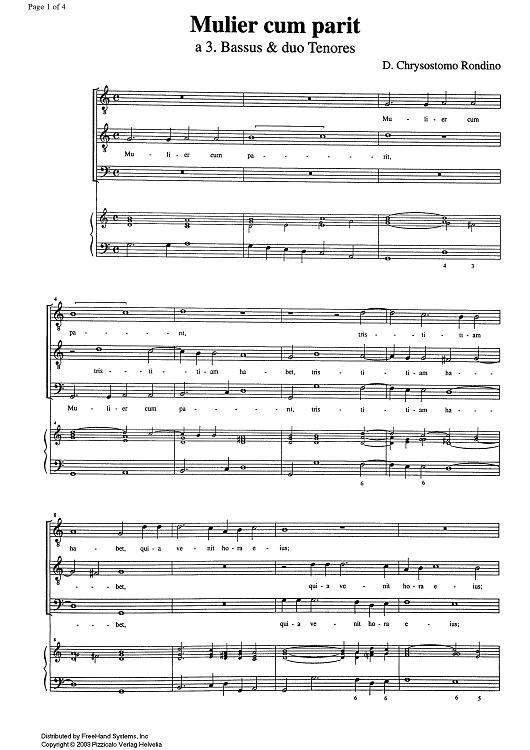 Digital Sheet Music for Mulier cum parit by , Crisostomo Rondini scored for 2 Tenors/Bass/Continuo; id:351049