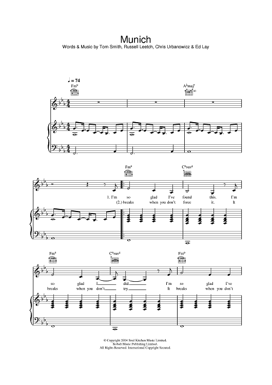 Digital Sheet Music for Munich by Corinne Bailey Rae, Editors, Ed Lay, Russell Leetch, Tom Smith, Chris Urbanowicz scored for Piano/Vocal/Chords; id:398054