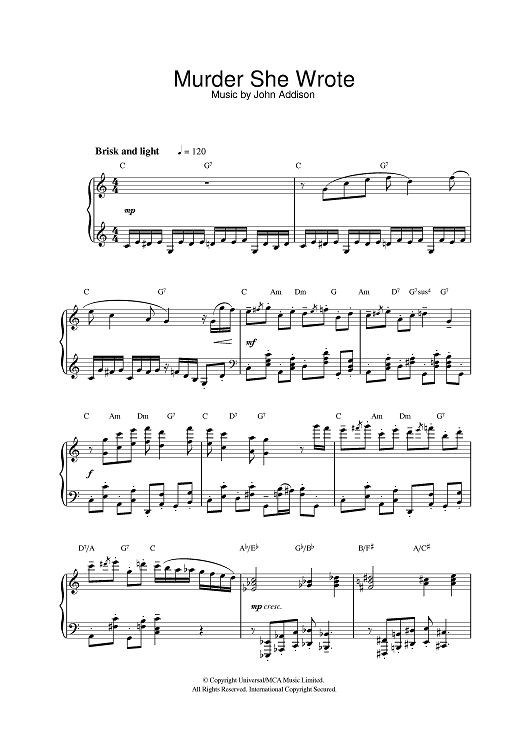 Digital Sheet Music for Murder She Wrote by John Addison scored for Piano; id:384844