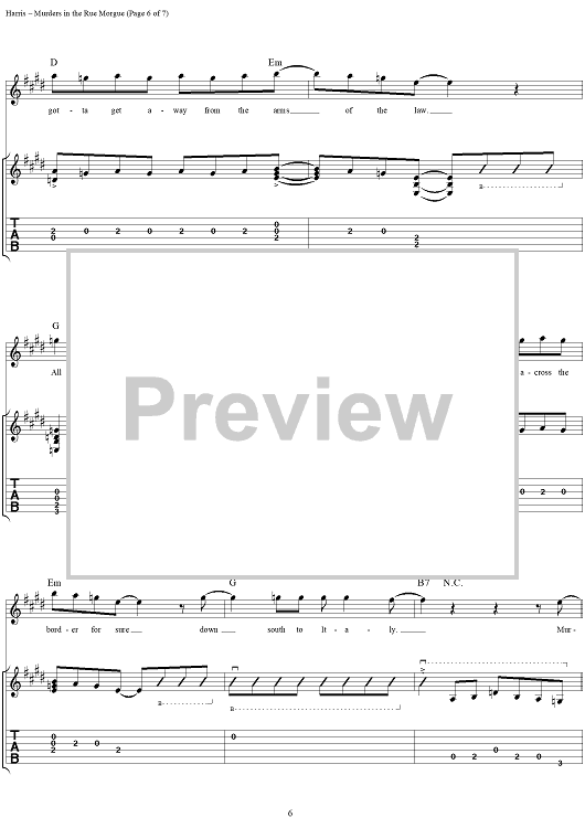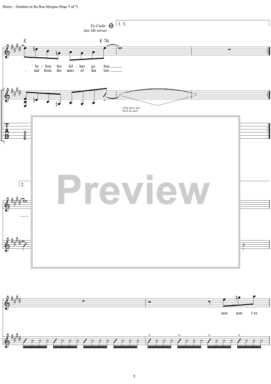 Digital Sheet Music for Murders in the Rue Morgue by Steve Harris, Iron Maiden scored for Guitar Tab/Vocal; id:112990