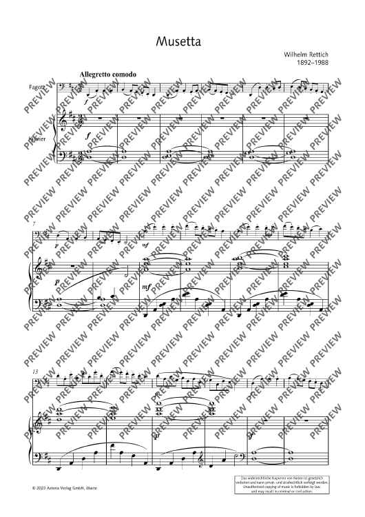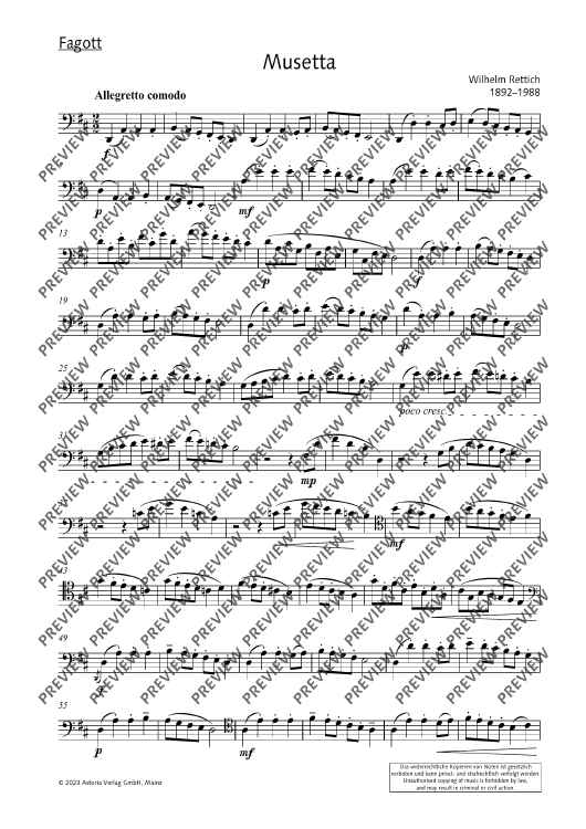 Digital Sheet Music for Musetta by Wilhelm Rettich scored for Bassoon And Piano; id:500971