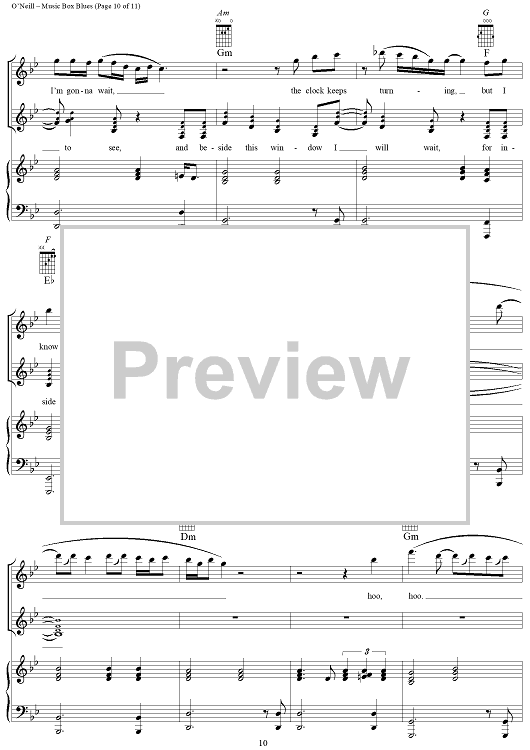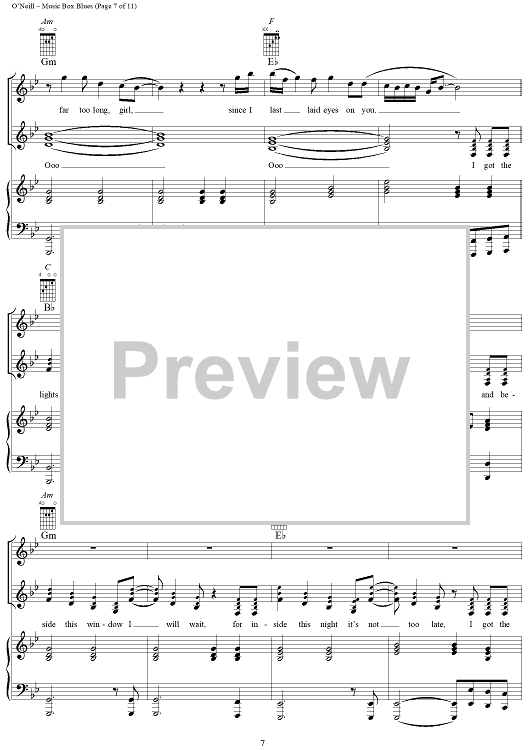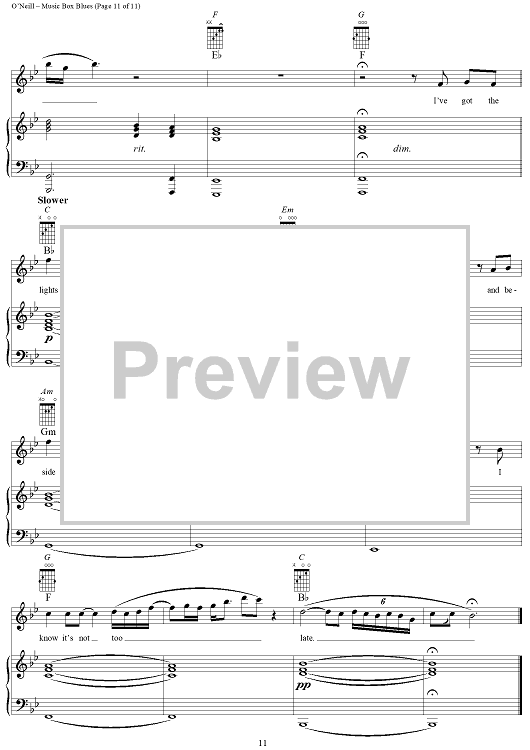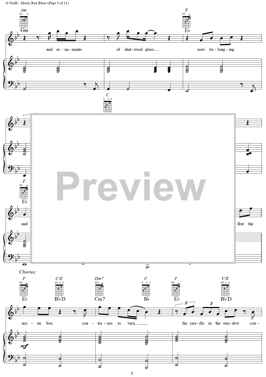 Digital Sheet Music for Music Box Blues by Trans-Siberian Orchestra, Paul O'Neill scored for Piano/Vocal/Chords; id:253006
