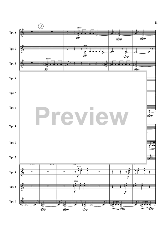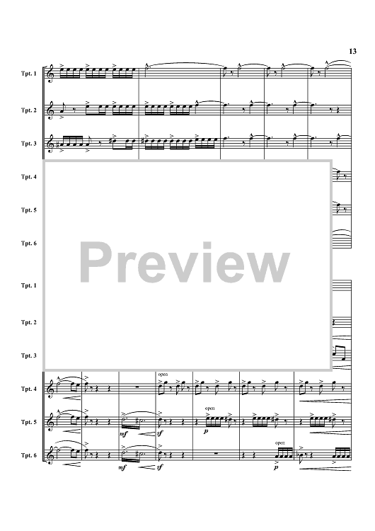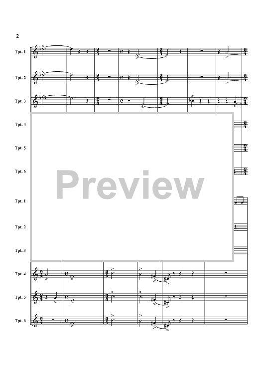 Digital Sheet Music for Music for Six Trumpets - Score by Bryan Doughty, Vaclav Nelhybel scored for Trumpet Sextet; id:321558