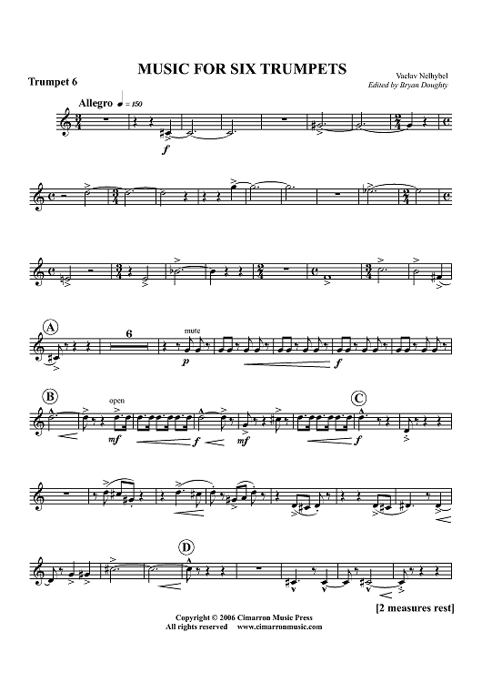 "Music for Six Trumpets - Trumpet 6" Sheet Music by Vaclav Nelhybel
