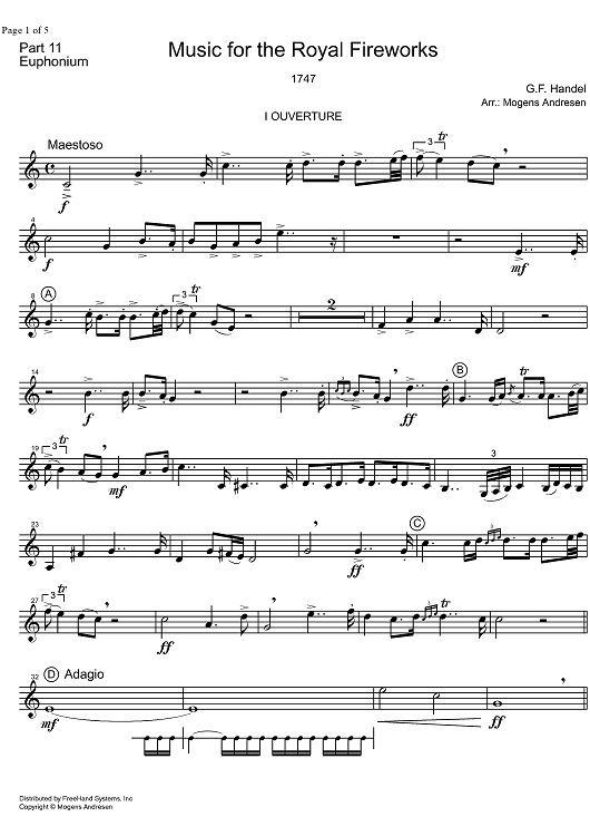 Digital Sheet Music for Music for the Royal Fireworks HWV 351 - Euphonium by , George Frideric Handel, Mogens Andresen scored for Brass Ensemble; id:328036