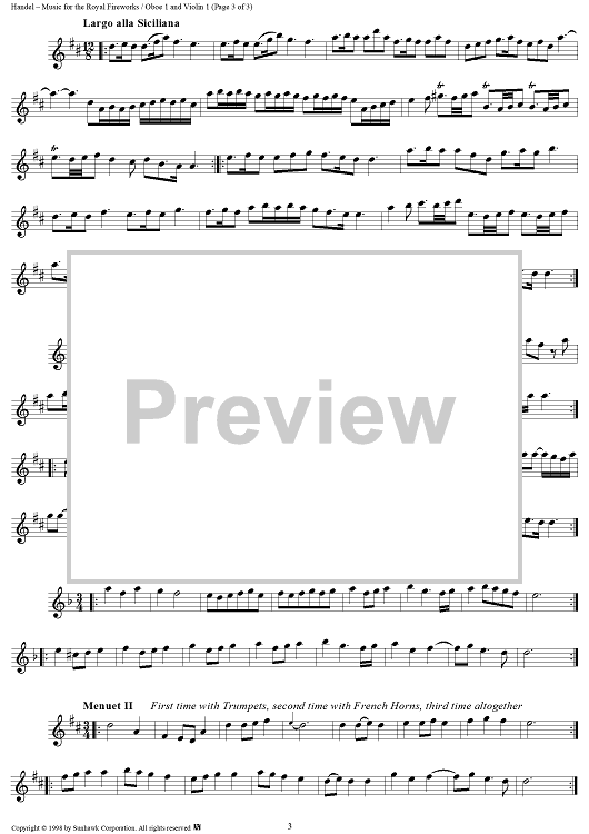 Digital Sheet Music for Music for the Royal Fireworks - Oboe 1/Violin 1 by George Frideric Handel scored for Chamber Orchestra; id:95642