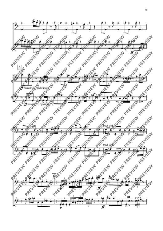 Both movements explore the specific sonorities of the bass recorder. The first movement is predominantly lyrical, whereas the second is very rhythmic and dominated by percussive effects.