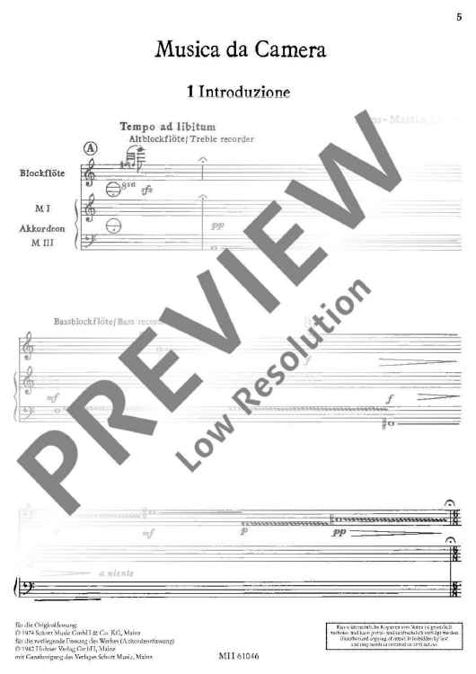 Digital Sheet Music for Musica da Camera by Hans-Martin Linde scored for Recorder (also Alto And Bass) And Accordion (m Iii); id:475935