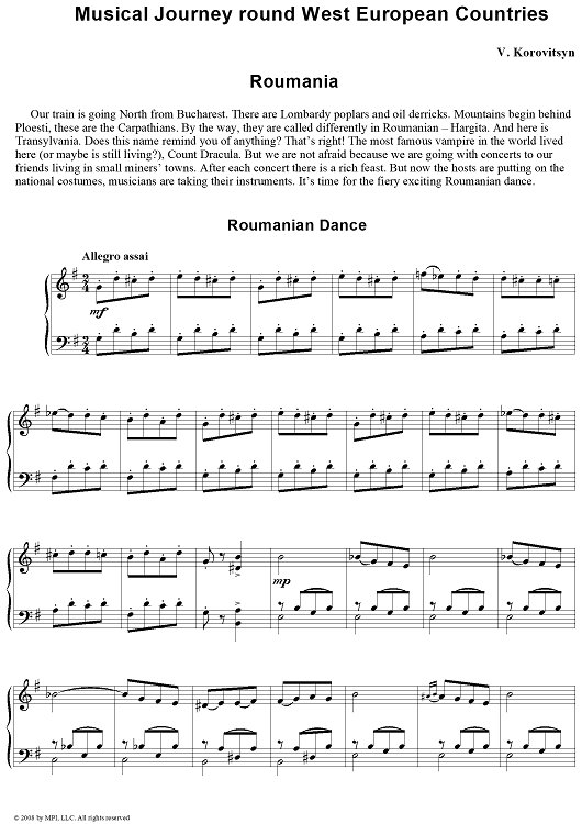 "Musical Journey. 19. Roumania. Roumanian Dance" Sheet Music by Vladimir Korovitsyn