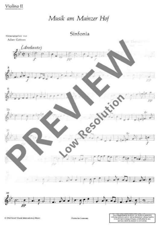 Digital Sheet Music for Musik am Mainzer Hof - Violin II by scored for Strings And Basso Continuo (harpsichord, Piano), Cello (viola Da Gamba) Ad Libitum; id:487533