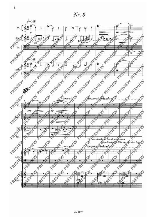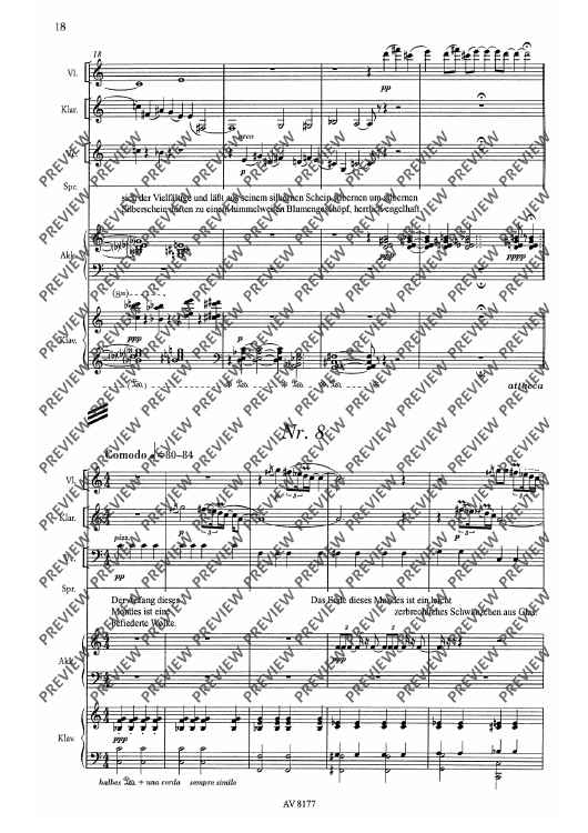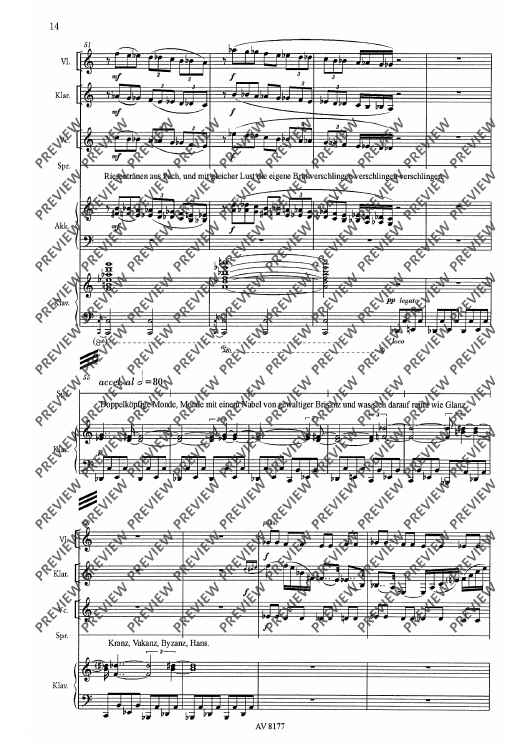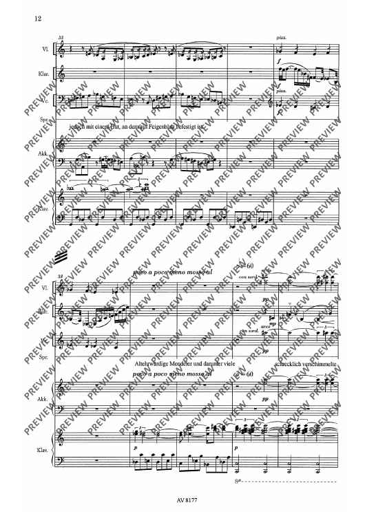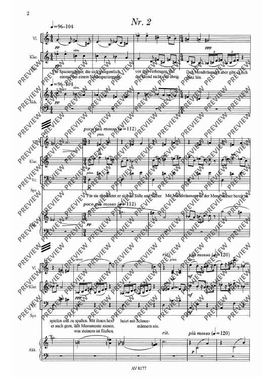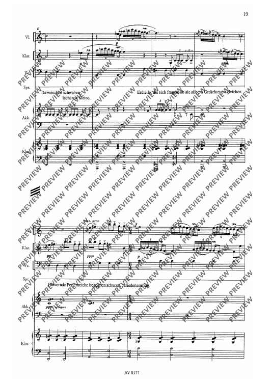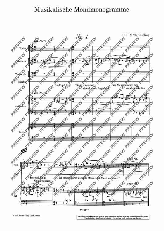 Digital Sheet Music for Musikalische Mondmonogramme - Score and Parts by Hans Peter Mueller-Kieling scored for Speaker, Clarinet, Accordion, Violin, Cello And Piano; id:492946
