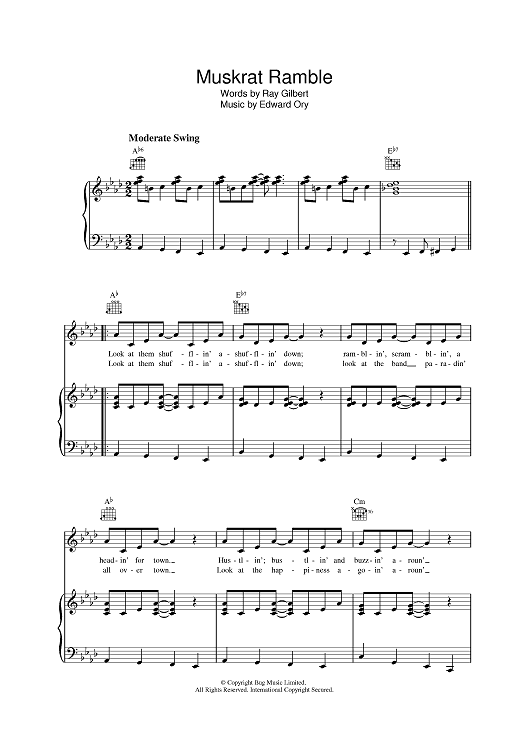 Digital Sheet Music for Muskrat Ramble by Edward Ory scored for Piano/Vocal/Chords; id:393459