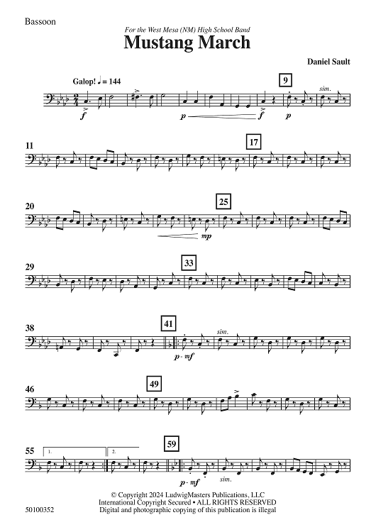 "Mustang March - Bassoon" Sheet Music by Daniel Sault