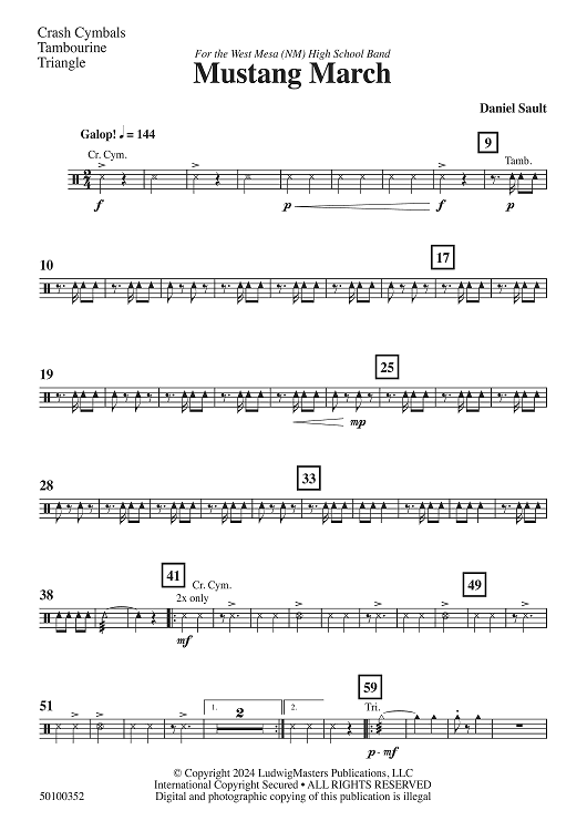 "Mustang March - Crash Cymbals / Tambourine / Triangle" Sheet Music by Daniel Sault