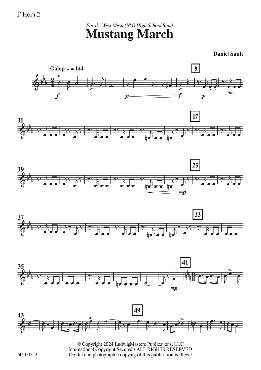 "Mustang March - F Horn 2" Sheet Music by Daniel Sault