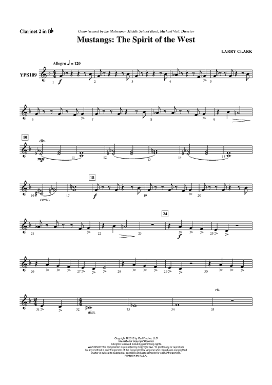 Digital Sheet Music for Mustangs - The Spirit of the West - Clarinet 2 in Bb by Larry Clark scored for Concert Band; id:431387