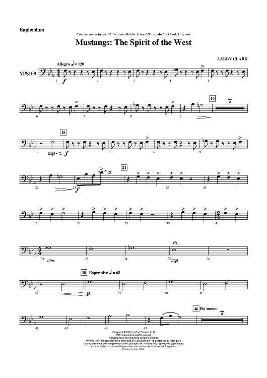 Digital Sheet Music for Mustangs - The Spirit of the West - Euphonium BC by Larry Clark scored for Concert Band; id:431398