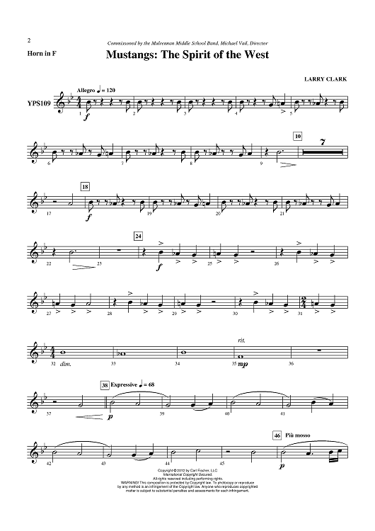Digital Sheet Music for Mustangs - The Spirit of the West - Horn in F by Larry Clark scored for Concert Band; id:431395
