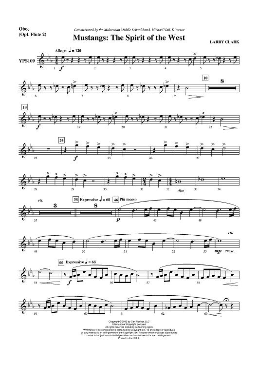 Digital Sheet Music for Mustangs - The Spirit of the West - Oboe (Opt. Flute 2) by Larry Clark scored for Concert Band; id:431385