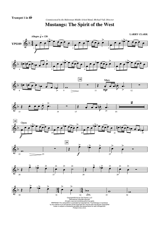 "Mustangs - The Spirit of the West - Trumpet 1 in Bb" Sheet Music by Larry Clark