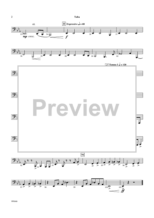 Digital Sheet Music for Mustangs - The Spirit of the West - Tuba by Larry Clark scored for Concert Band; id:431399