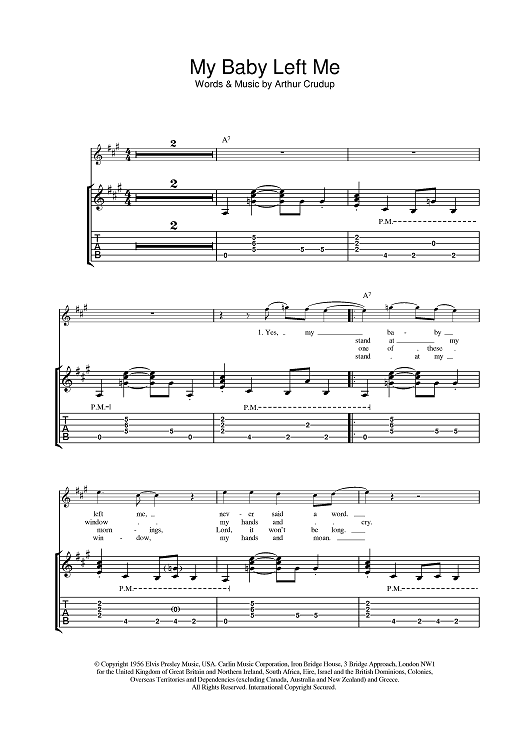 Digital Sheet Music for My Baby Left Me by Elvis Presley scored for Guitar Tab; id:378707