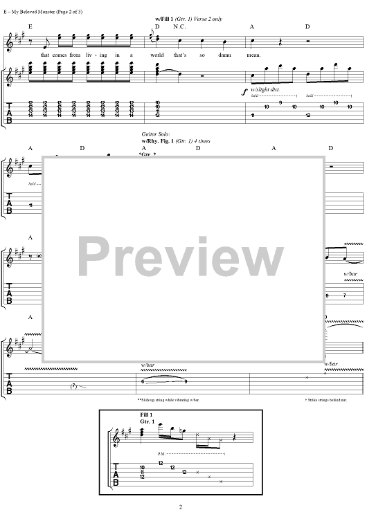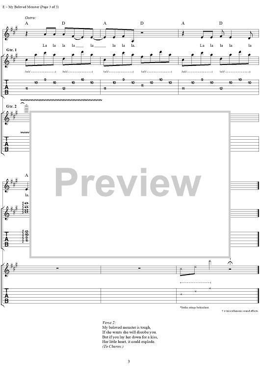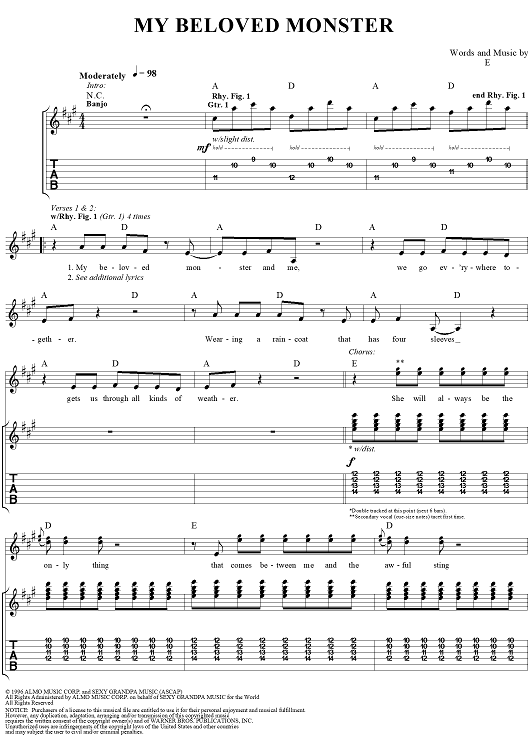 Digital Sheet Music for My Beloved Monster by Mark Everett, Eels scored for Guitar Tab/Vocal; id:270853