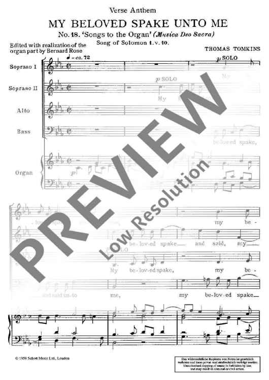 Digital Sheet Music for My beloved spake unto me - Score by Thomas Tomkins scored for Soloists (ssab), Mixed Choir And Organ; id:474204