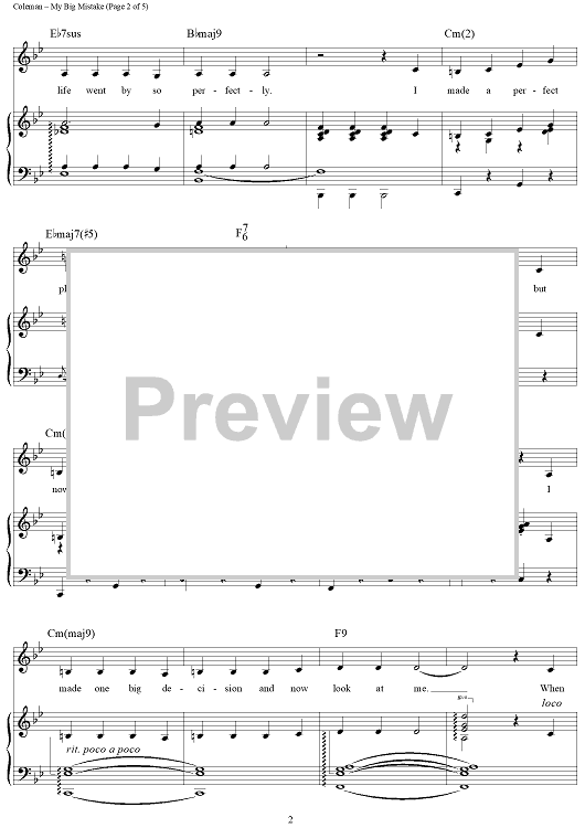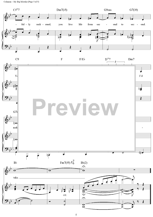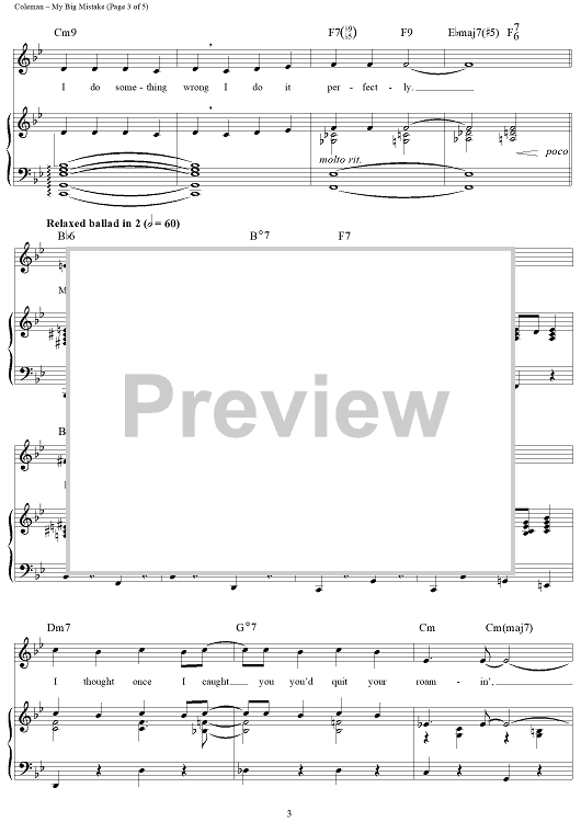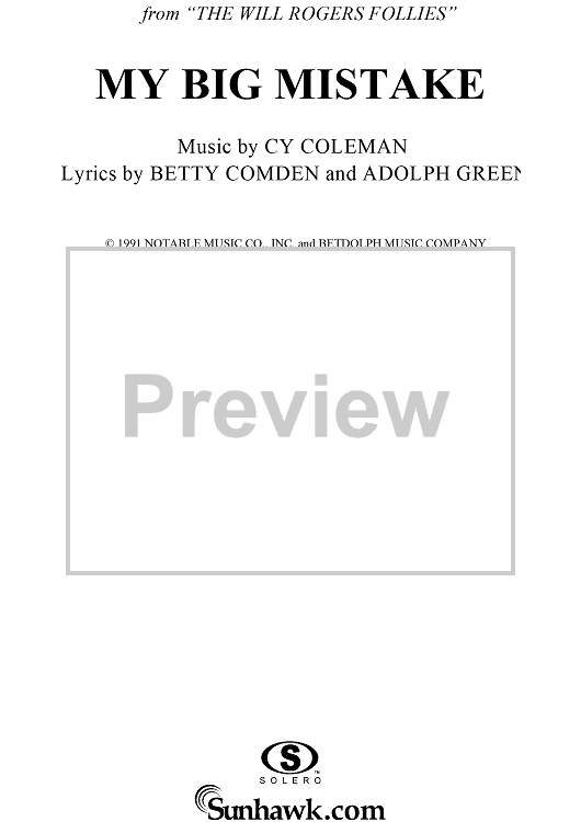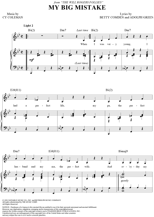 Digital Sheet Music for My Big Mistake by Cy Coleman, Betty Comden, Adolph Green scored for Piano/Vocal/Chords; id:116214