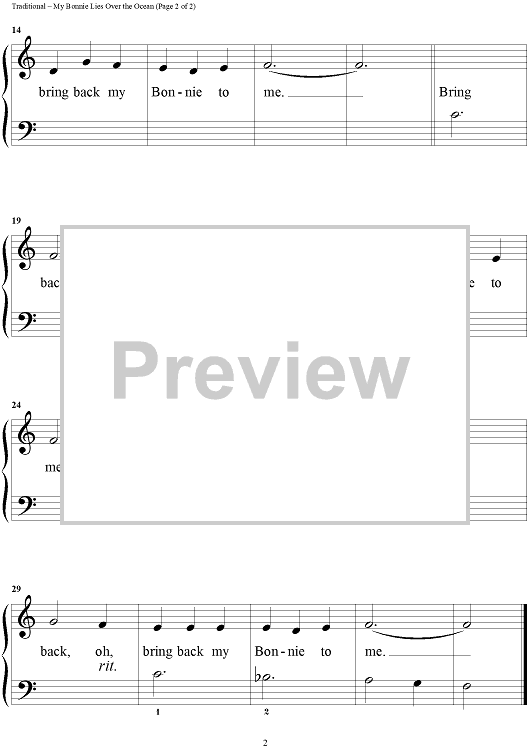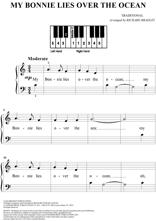 Digital Sheet Music for My Bonnie Lies Over the Ocean by Richard Bradley, Traditional scored for Five Finger Piano; id:283576