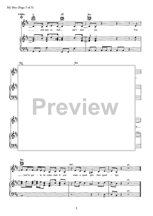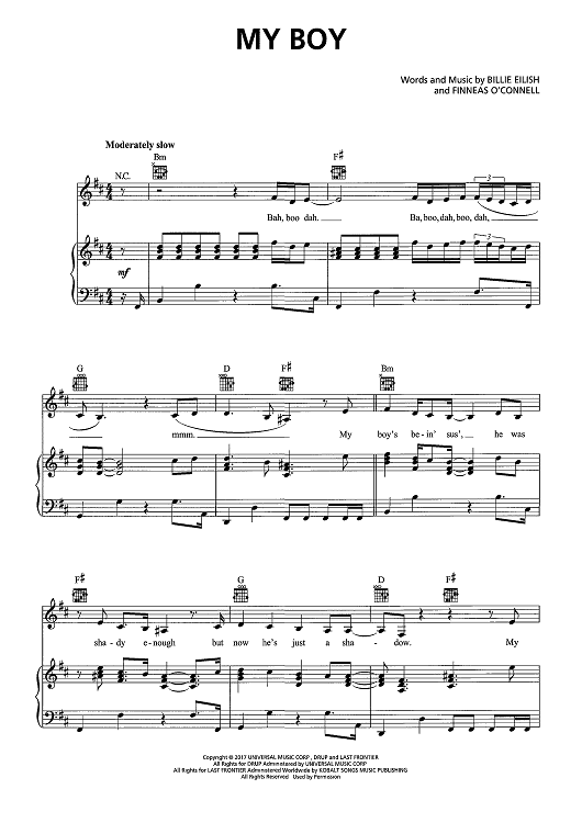 Digital Sheet Music for My Boy by Finneas Baird O'Connell, Billie Eilish scored for Piano/Vocal/Chords; id:467655