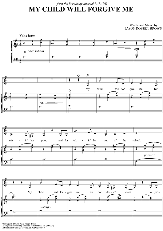 Digital Sheet Music for My Child Will Forgive Me by Jason Robert Brown scored for Piano/Vocal/Chords; id:410114