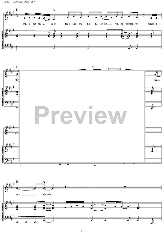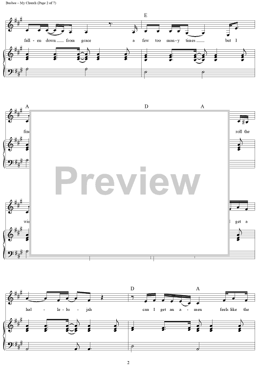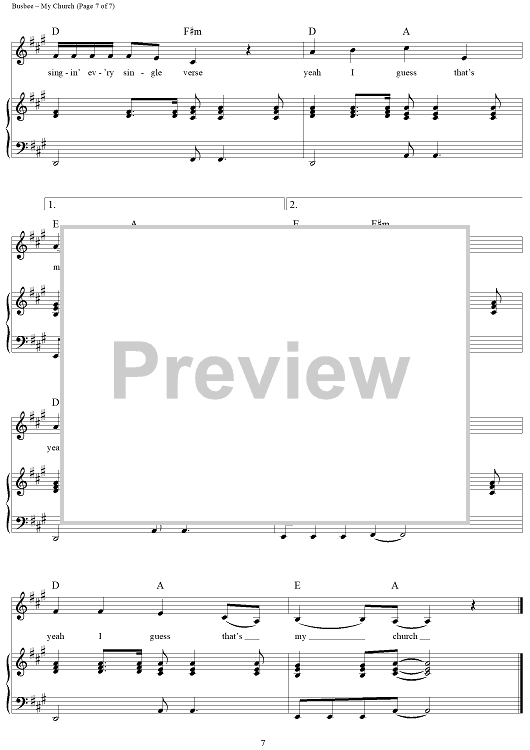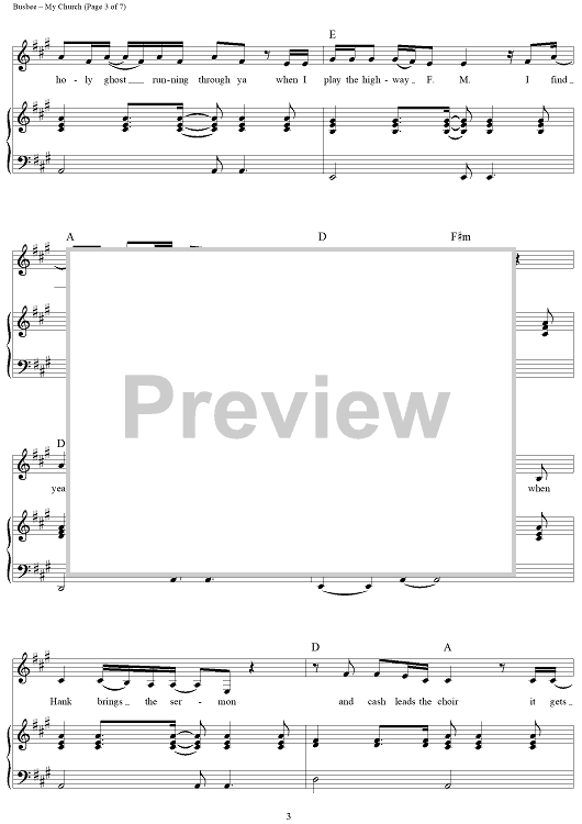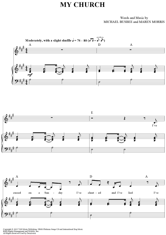 Digital Sheet Music for My Church by Busbee, Maren Morris scored for Piano/Vocal/Chords; id:457273