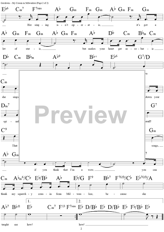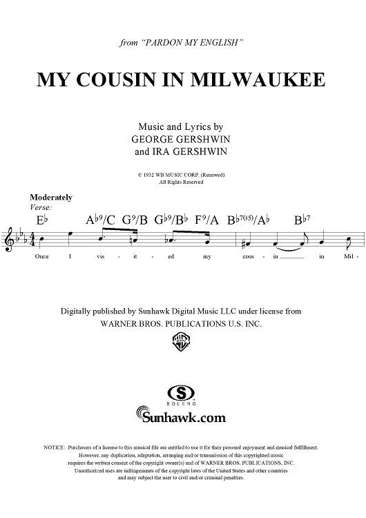 Digital Sheet Music for My Cousin in Milwaukee by , George Gershwin, Ira Gershwin scored for Lead Sheet; id:283665