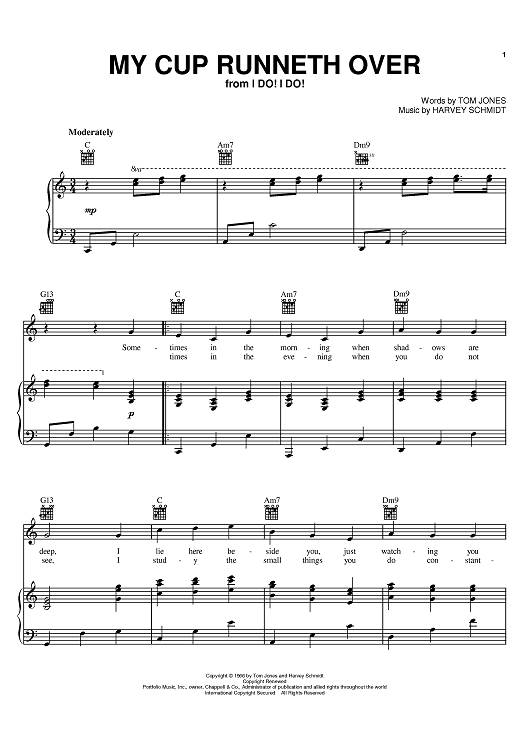 Digital Sheet Music for My Cup Runneth Over by Tom Jones, Harvey Schmidt, Ed Ames scored for Piano/Vocal/Chords; id:368745