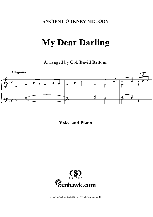 Digital Sheet Music for My Dear Darling by Col. David Balfour scored for Voice/Piano; id:276523