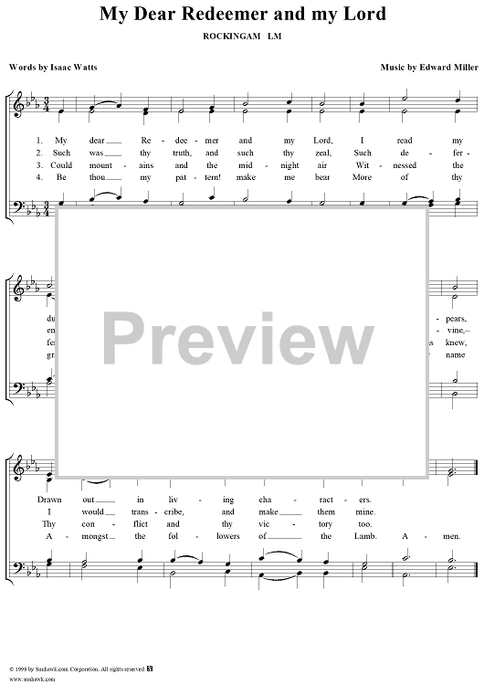 Digital Sheet Music for My Dear Redeemer and my Lord by Edward Miller scored for Four-part Mixed Chorus; id:251338