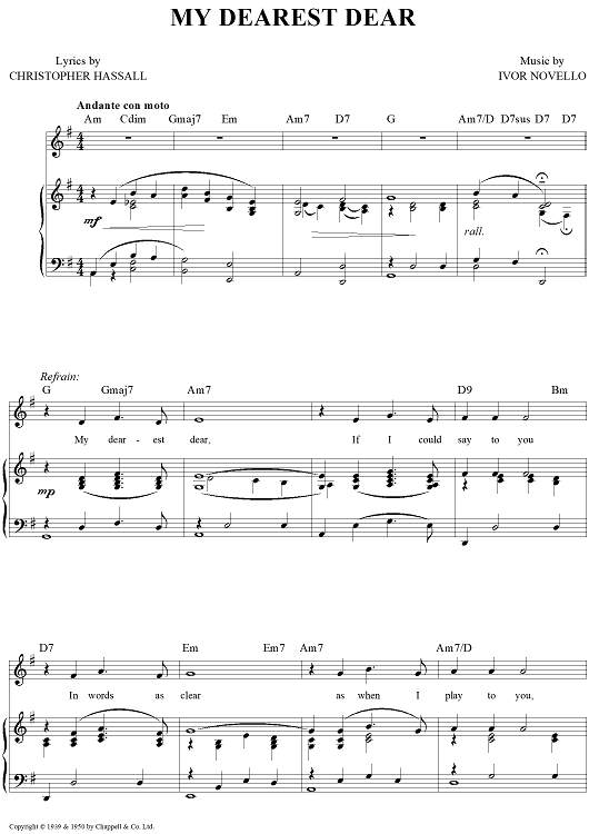 Digital Sheet Music for My Dearest Dear by Ivor Novello, Christopher Hassall scored for Piano/Vocal/Chords; id:425798