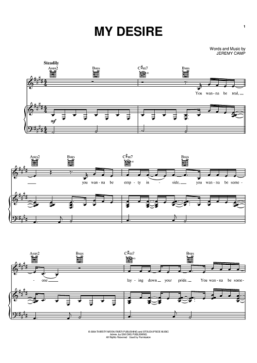 Digital Sheet Music for My Desire by Jeremy Camp scored for Piano/Vocal/Chords; id:381863