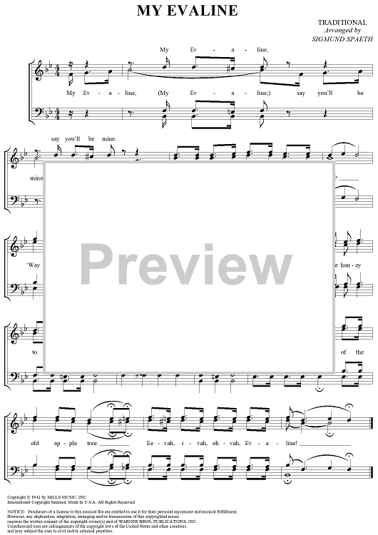 Digital Sheet Music for My Evaline by Sigmund Spaeth, Traditional scored for Barbershop Quartet; id:240648