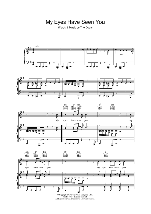 Digital Sheet Music for My Eyes Have Seen You by The Doors scored for Piano/Vocal/Chords; id:390959