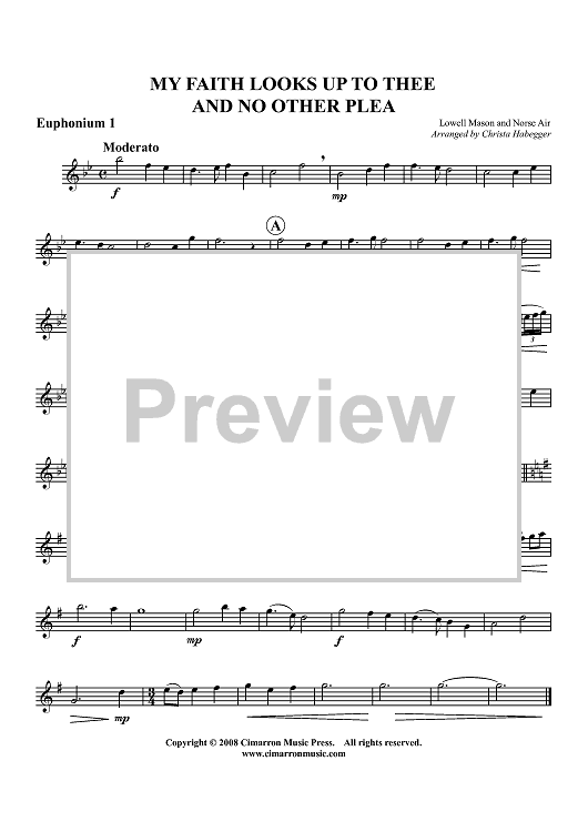 Digital Sheet Music for My Faith Looks Up to Thee and No Other Plea - Euphonium 1 BC/TC by Various, Christa Habegger scored for Tuba Quartet; id:424276