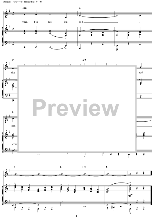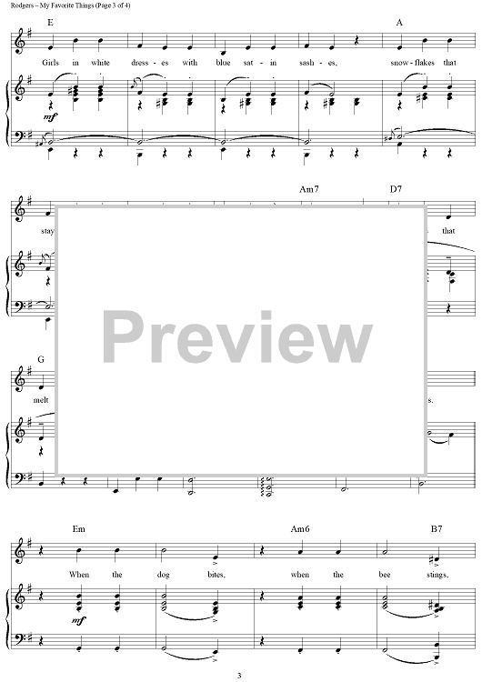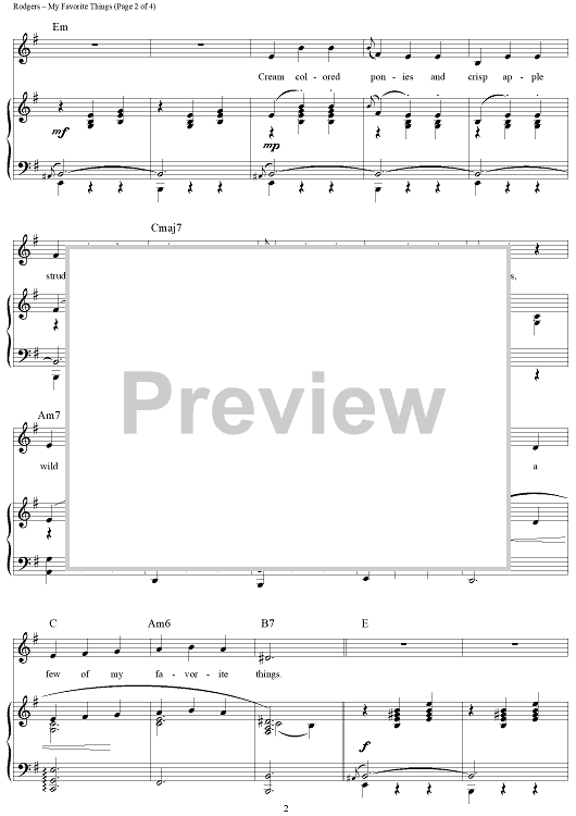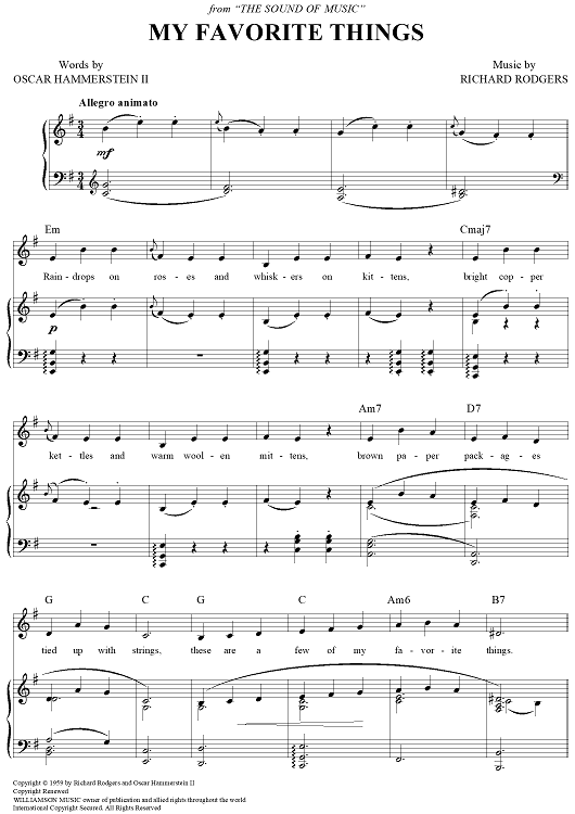 Digital Sheet Music for My Favorite Things by Richard Rodgers, Oscar Hammerstein II scored for Piano/Vocal/Chords; id:365258