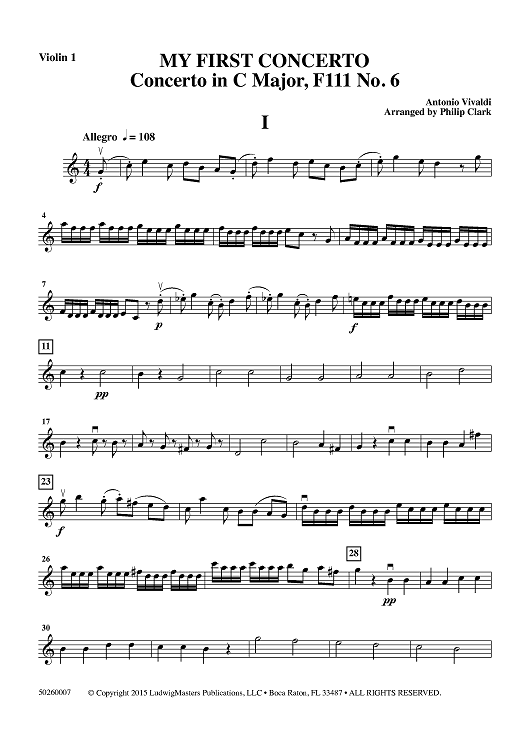 Digital Sheet Music for My First Concerto - Concerto in C Major, F111 No. 6 - Violin 1 by Antonio Vivaldi, Philip Clark scored for String Orchestra; id:458895