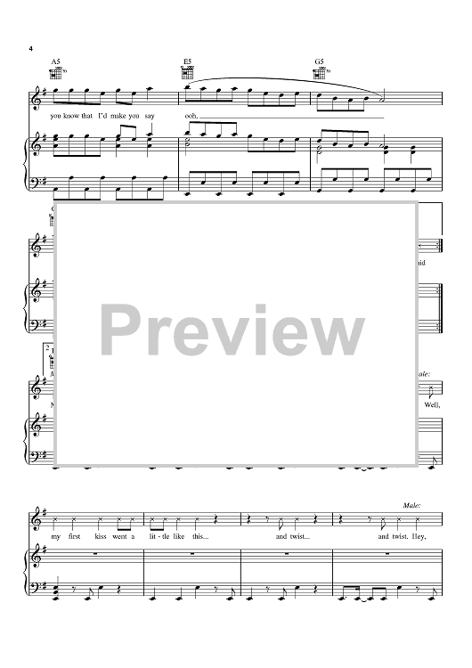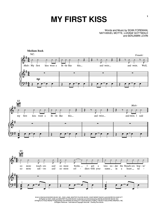 Digital Sheet Music for My First Kiss by Kesha, Benjamin Levin, Sean Foreman, Nathaniel Motte, 3OH!3, Lukasz Gottwald scored for Piano/Vocal/Chords; id:414919
