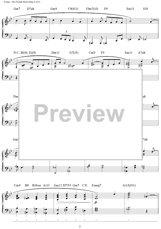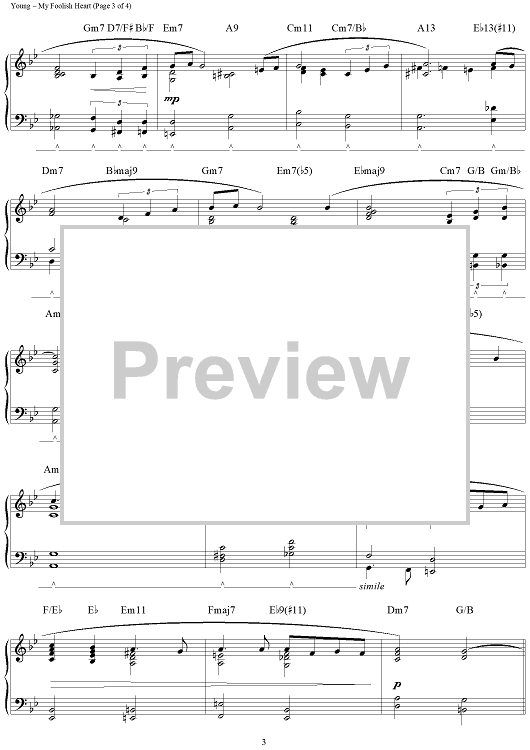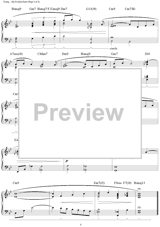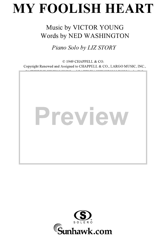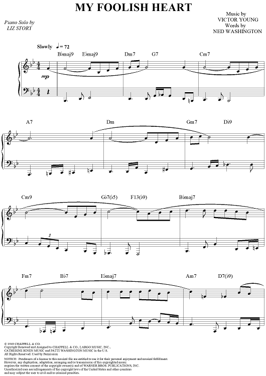 Digital Sheet Music for My Foolish Heart by Liz Story, Ned Washington, Victor Young scored for Piano Solo; id:115799