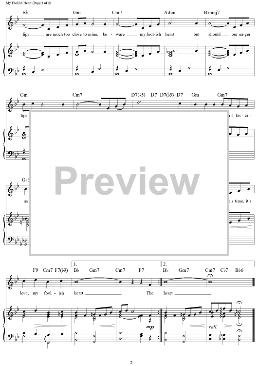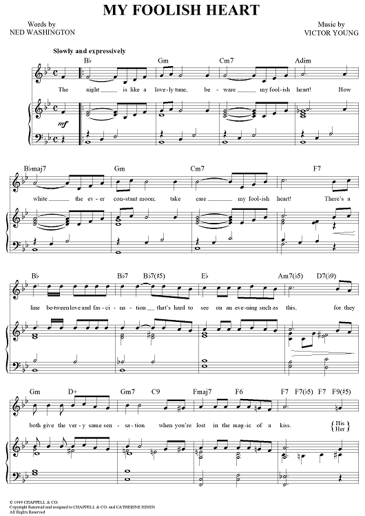 Digital Sheet Music for My Foolish Heart by Ned Washington, Victor Young, Mindy Carson scored for Piano/Vocal/Chords; id:286137
