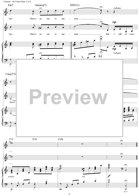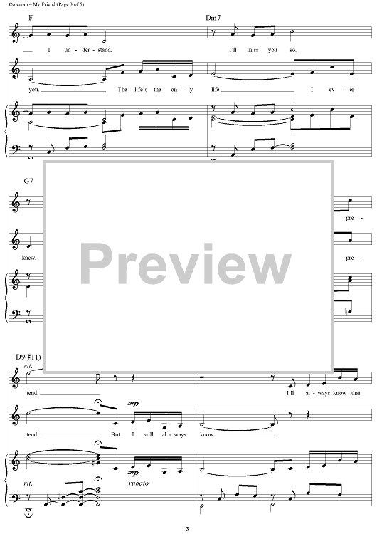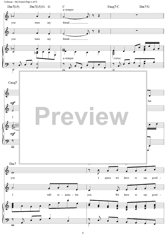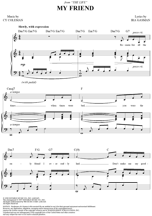 Digital Sheet Music for My Friend by Cy Coleman, Ira Gasman scored for Piano/Vocal/Chords; id:272384