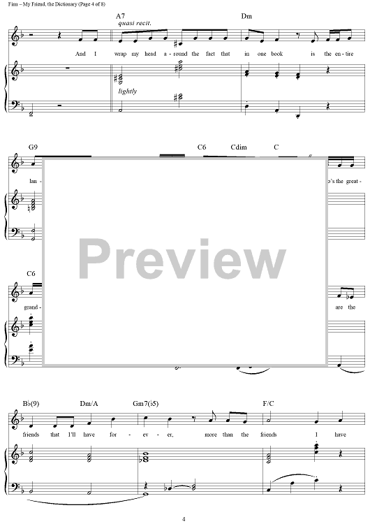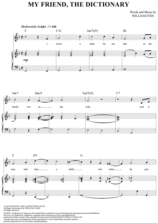 Digital Sheet Music for My Friend, the Dictionary by William Finn scored for Piano/Vocal/Chords; id:317818