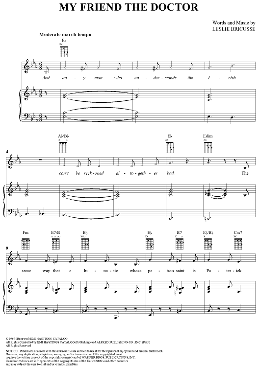 Digital Sheet Music for My Friend the Doctor by Leslie Bricusse scored for Piano/Vocal/Chords; id:362814